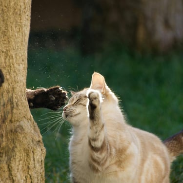 Różnorodne powierzchnie - trawa, ziemia, kora drzew - naturalnie ścierają pazury. To zdrowsza alternatywa niż drapaki w domu.